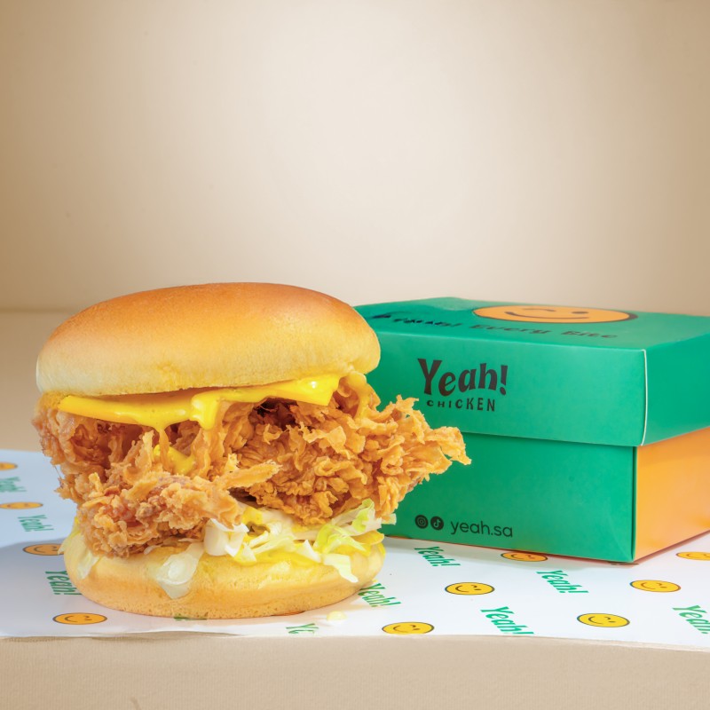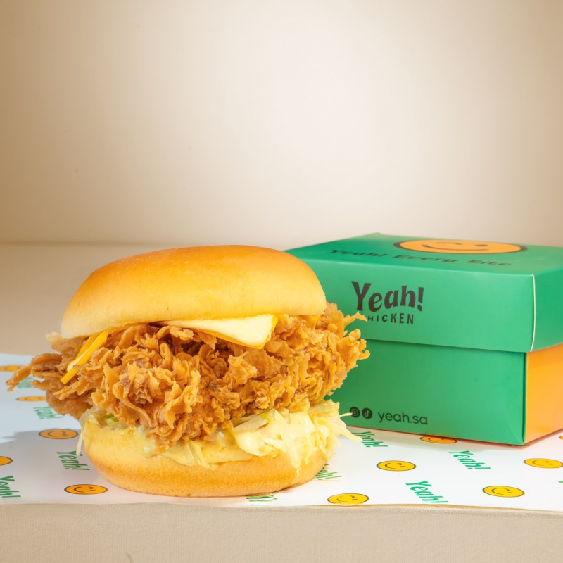 (928 سعرة حرارية)خبز برغر، قطعة دجاج مقرمشة، صوص باتر ميلك، شريحة جبنة، خس