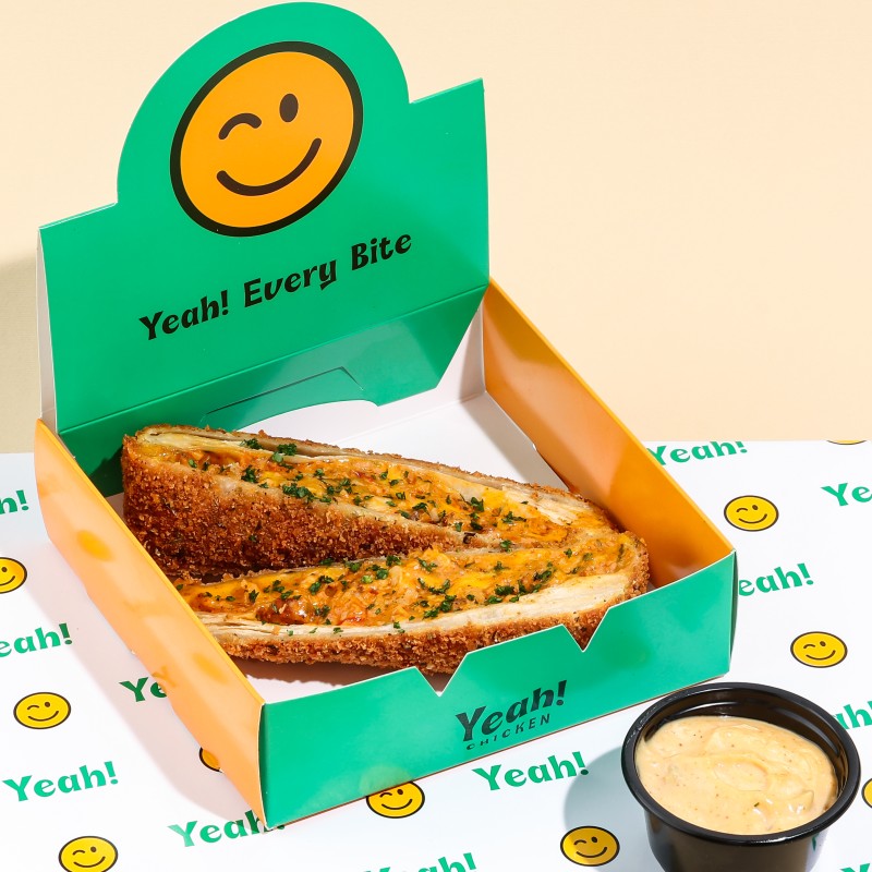 قطع دجاج متبلة بتتبيلة سرية ومحشوه بخليط فاخر من الأجبان الثلاثة ومغطى بطبقة ذهبية مقرمشة تقدم مع صوص سيغنشر
